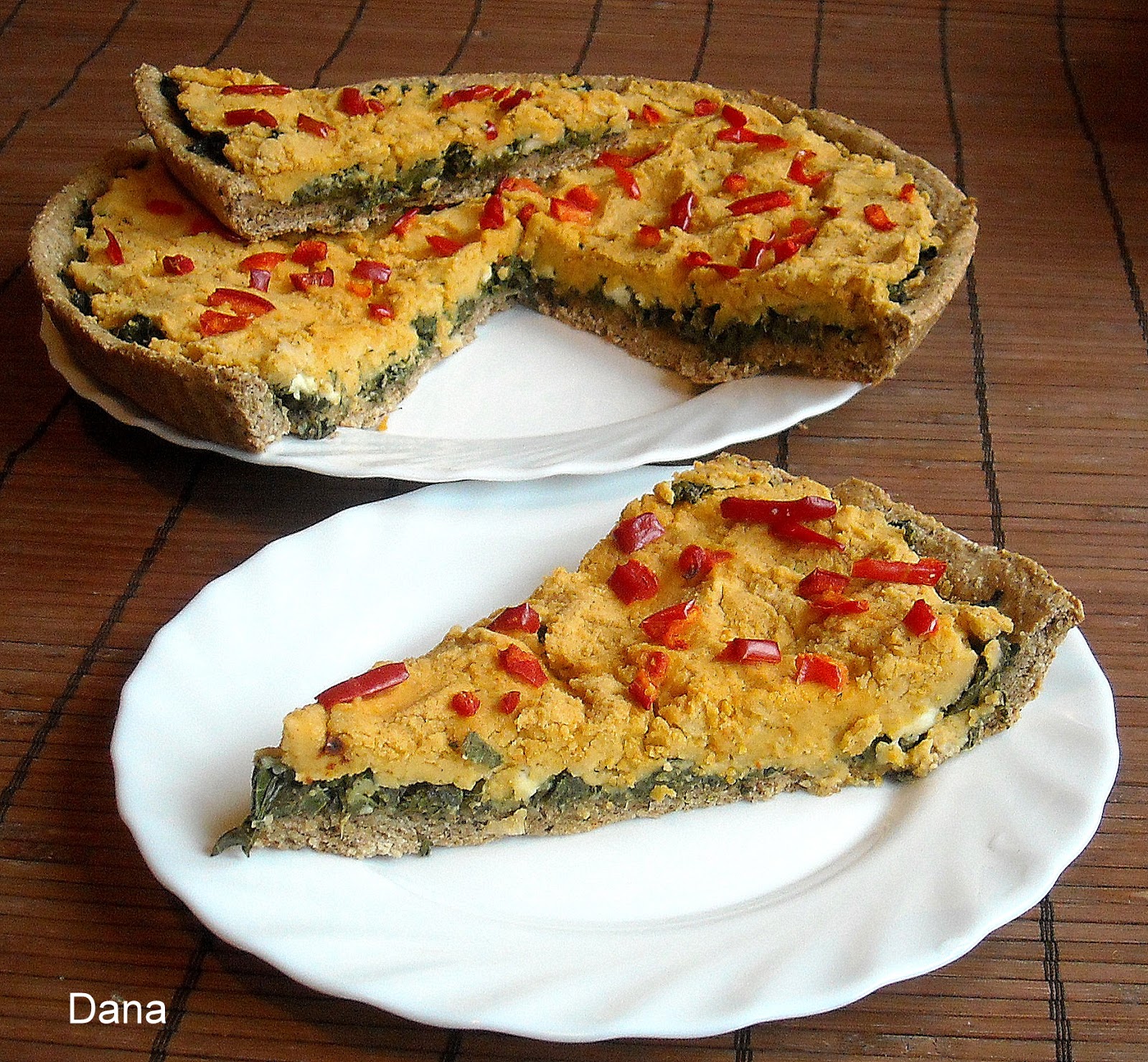 Preko testa staviti obarenu blitvu sa sirom, pa staviti sloj od humusa ( namaz od leblebija).