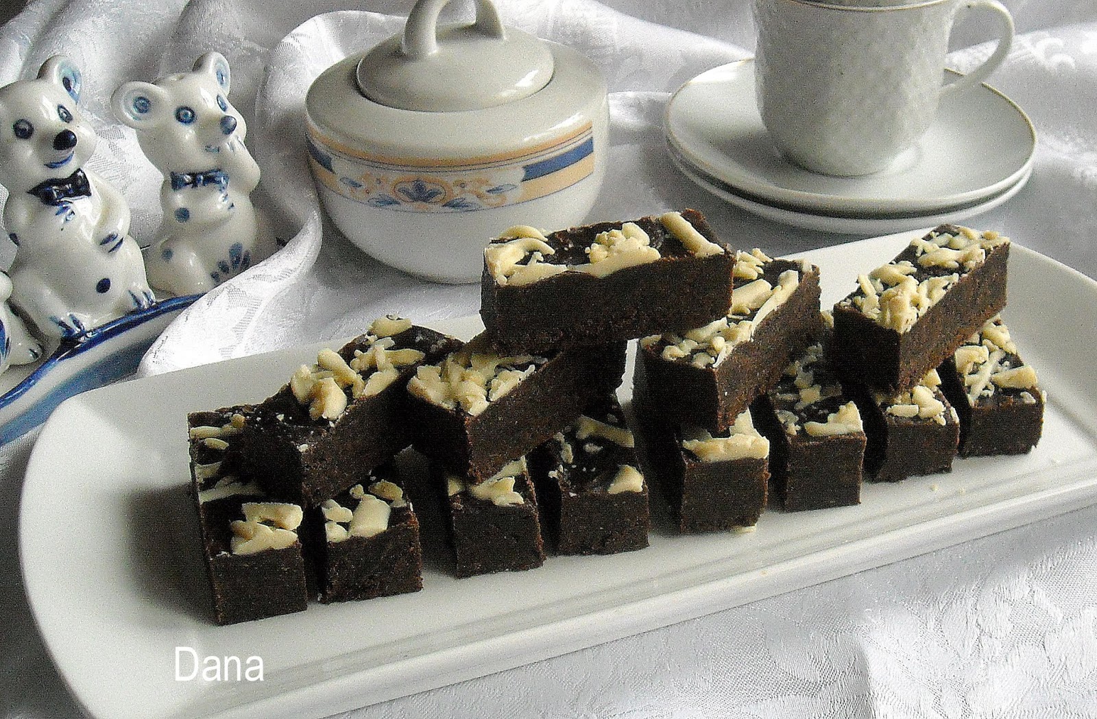 U posudu staviti šećer, vodu i ulje. Kuvati dok se šećer ne istopi i postepeno dodavati brašno i kakao muteći smesu. Kad dodamo brašno i kakao još mešati na vatri 2-3 minuta da se masa izjednači i staviti u kalup, poravnjati i dok je masa još topla po vrhu krupno narendati belu čokoladu i ostaviti da se ohladi.
