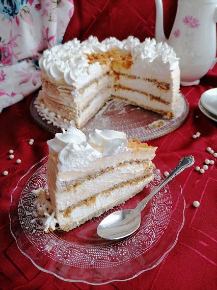 Ispeći 3 kore. Za jednu koru umutiti 4 belanaca, dodati 4 kašike šećera. Dobro umutiti i dodati 4 kašike mlevenih lešnika pomešano sa 1 kašikom brašna. Lagano izmešati varjačom i staviti u kalup prečnika 26 cm prethodno obložen papirom. Peći koru na 180 stepeni oko 15 - 20 minuta. Tako ispeći još 2 kore.